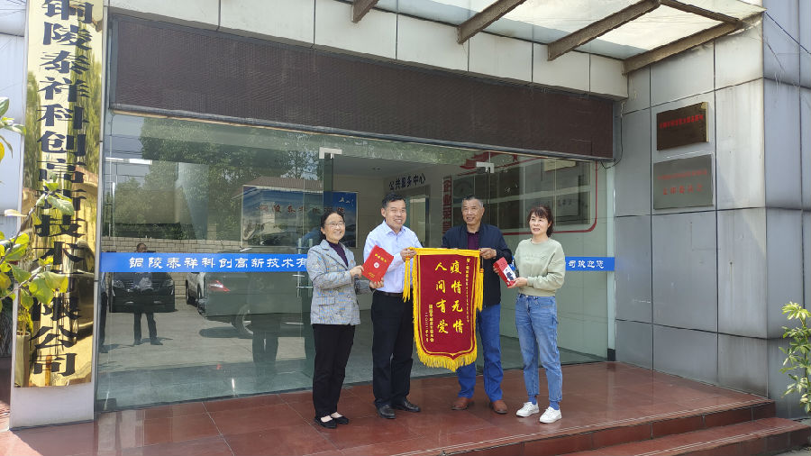 2022年5月16日,銅陵泰祥科創(chuàng )高新技術(shù)有限公司收到了來(lái)自學(xué)苑社區“疫情無(wú)情,人間有愛(ài)”的錦旗,表?yè)P了對泰祥園區在疫情期間的責任與擔當。
