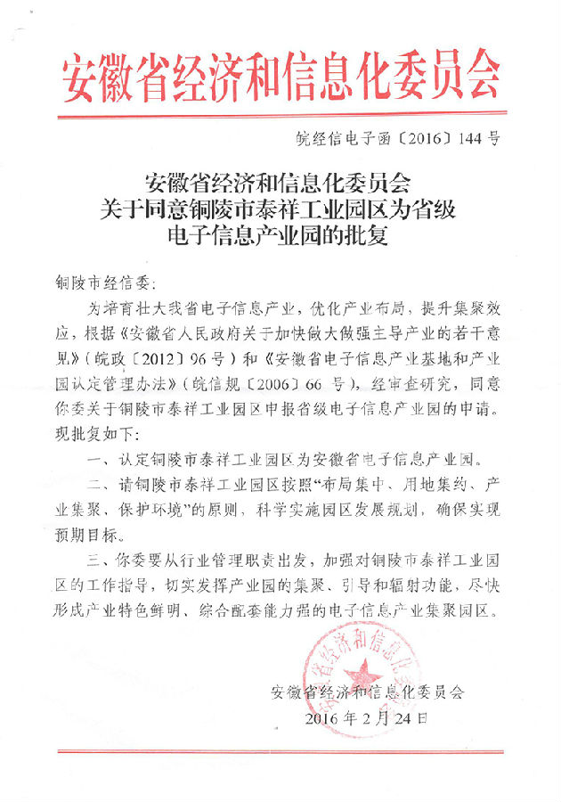 上一篇:我市泰祥工業(yè)園區被認定為安徽省電子信息產(chǎn)業(yè)園